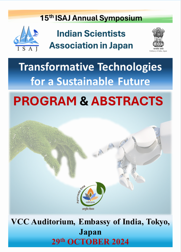The 15th ISAJ Annual Symposium on Transformative Technologies for a Sustainable Future is organized by the Indian Scientists Association in Japan (ISAJ, an NPO in Japan) to highlight cutting-edge scientific advancements by Indian researchers and their Japanese and other international colleagues. This year’s symposium will focus on innovations across various fields of science and technology. It will feature plenary and invited talks from distinguished researchers from universities and research institutes in Japan and selected oral presentations by emerging scientists.